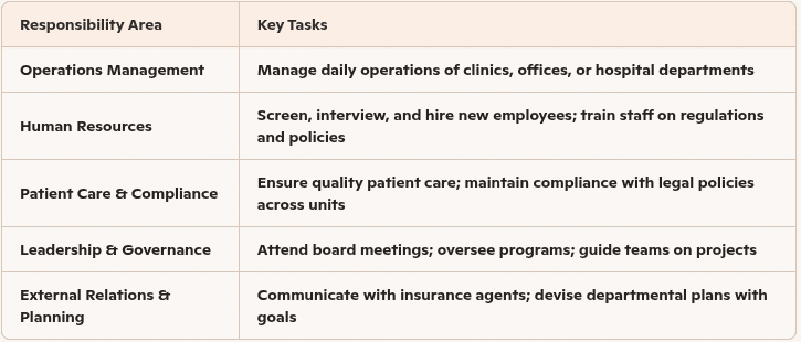 Key roles and responsibilities of a health services manager