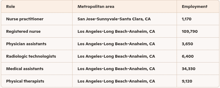 Precise job growth and salary estimates provide a more detailed view, as the following infographic shows the top metropolitan areas in California and their distribution of key healthcare roles. This overview helps professionals maintain their focus on the clear, definable career pathways in the healthcare system.